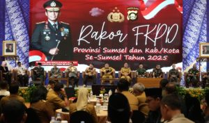 BATURAJA, FBI – Bupati OKU H. Teddy Meilwansyah menghadiri rapat koordinasi (rakor) forum komunikasi pimpinan daerah (forkopimda) Provinsi Sumatera Selatan, Selasa (18/3/2025) di Ballroom Hotel Novotel Palembang.